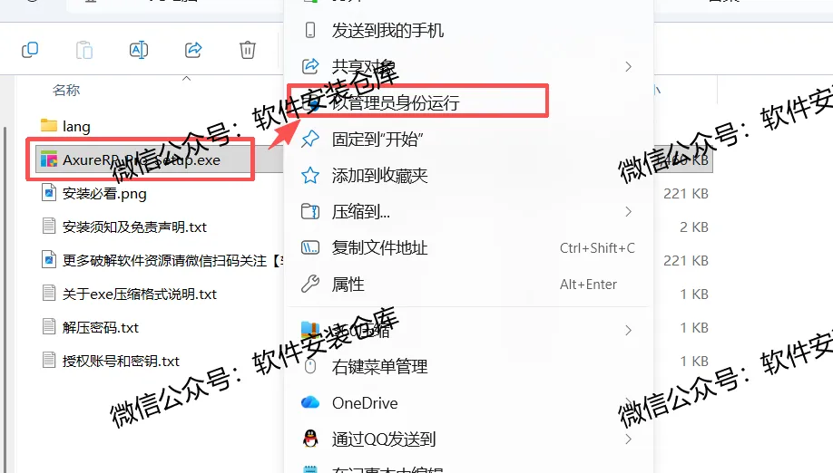 2.打开解压好的文件夹,鼠标右键以管理员身份运行Axure rp7安装程序。