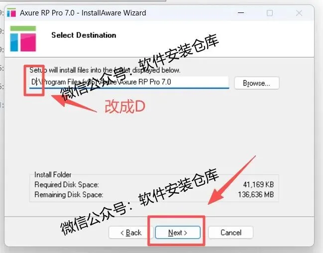5.更改安装盘符,直接C改成D