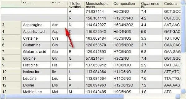9、打开以后出现下列数据,可以在这里查看氨基酸的相关数据。
