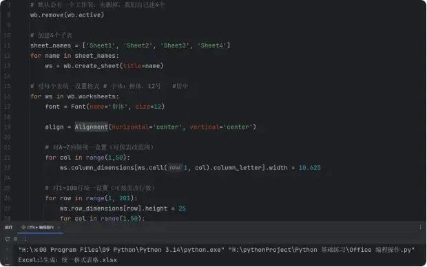 三、复制代码到Pycharm软件运行,即可生成一个模板Excel
