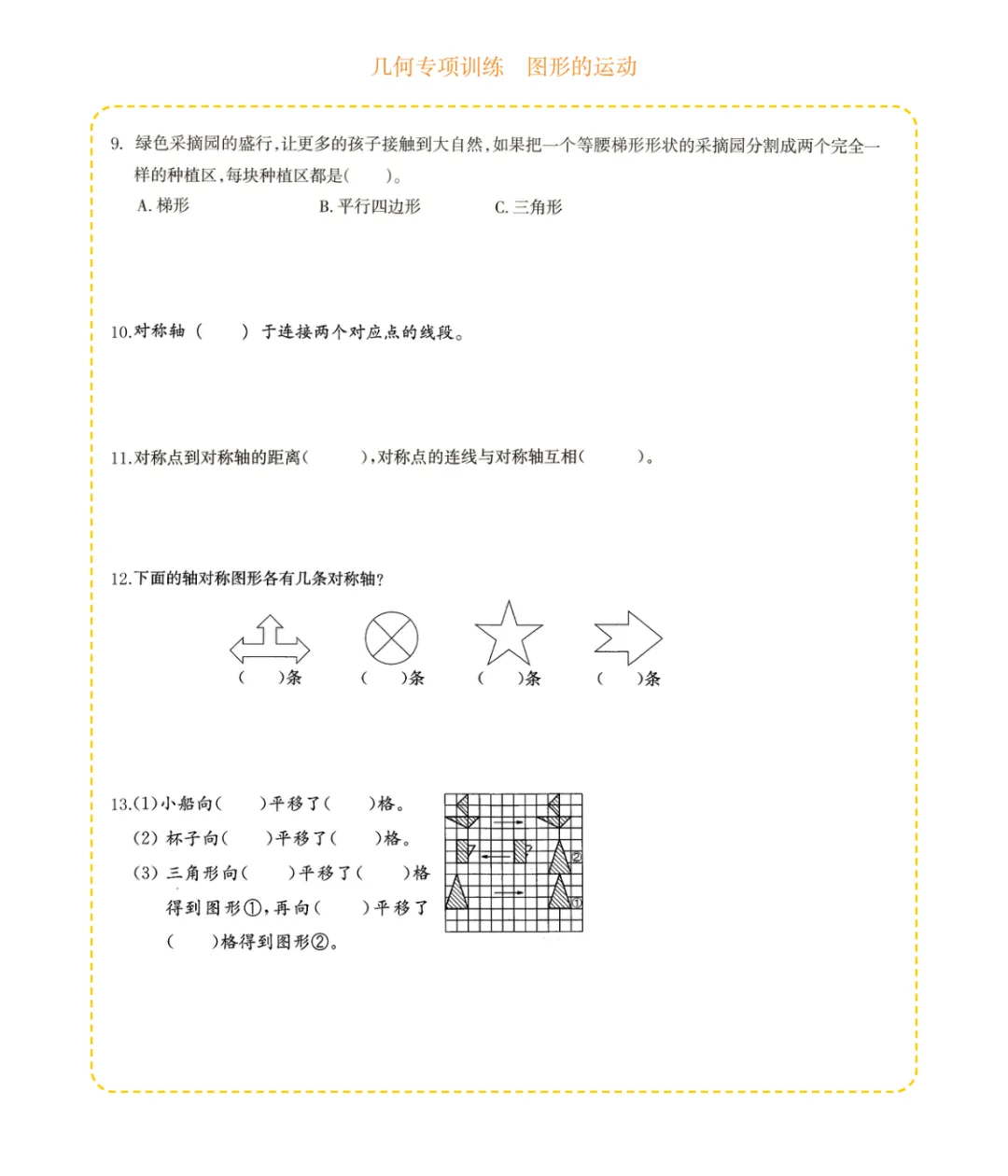 本站文章均为手工撰写未经允许谢绝转载:夜雨聆风 » 四年级下数学几何专项训练-图形的运动(可下载打印)