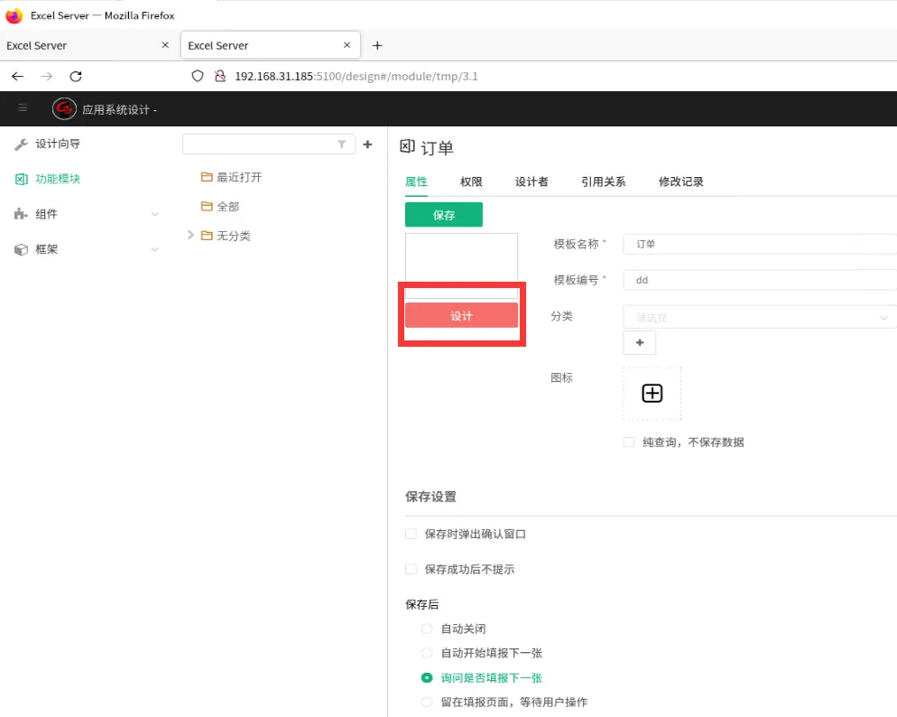 上图所示,如果是设计模版,点击上图所示的“设计”页签。点击新建模版,进行模版设计,接下来的操作跟Windows的模版设计界面类似,不再继续介绍。