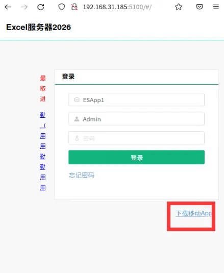 如果是安卓手机,手机浏览器访问ESWeb地址,下图所示: