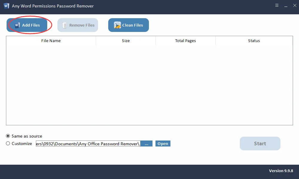 点击Add添加你需要处理的word文档文件,这个可根据需要添加多个文件