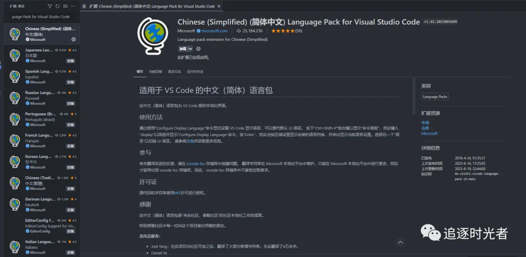 拓展描述:此中文(简体)语言包为 VS Code 提供本地化界面。