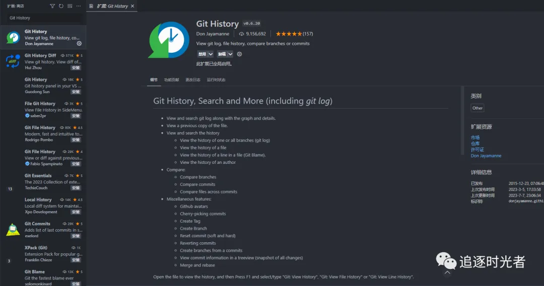 插件市场地址:https://marketplace.visualstudio.com/items?itemName=donjayamanne.githistory