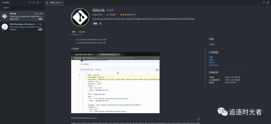 插件市场地址:https://marketplace.visualstudio.com/items?itemName=qezhu.gitlink