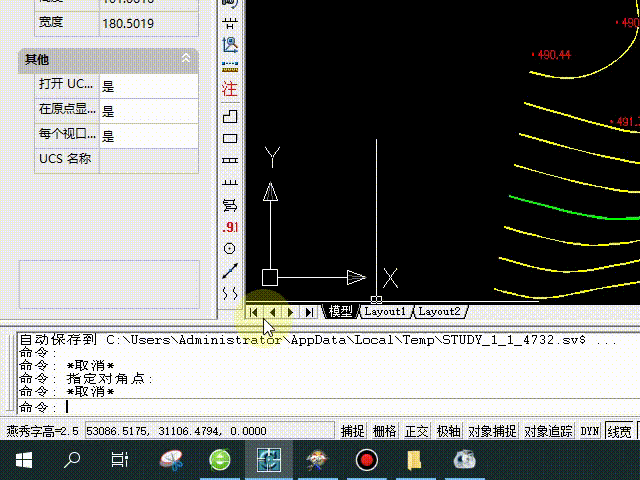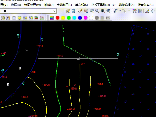 ▼选择图面上颜色为黄色的等高线