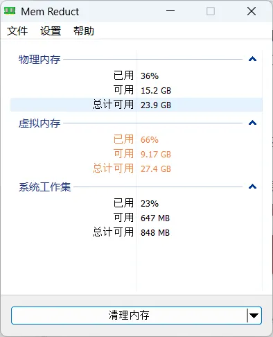 这是一款开源的内存清理软件,用它就两个原因:轻量和快速,安装后打开,点击清理内存就能快速清理