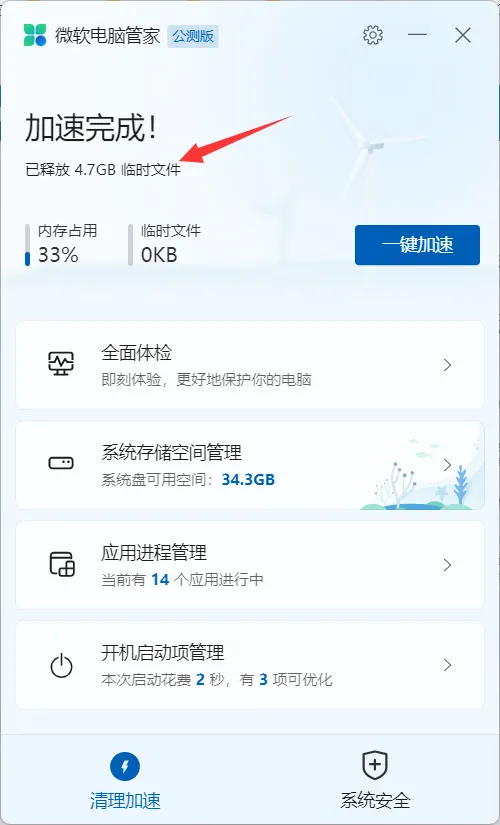 没错,这是微软官方出的,目前已经公测到2.2版本,支持内存清理、磁盘清理、进程管理和病毒查杀等功能