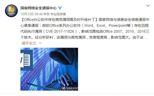 【网警提示】office办公软件存在高危漏洞