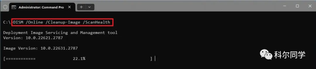 如果系统映像有问题,使用带有RestoreHealth选项的 DISM 来自动扫描和修复常见问题。