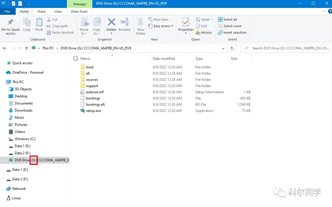 15.在“这台电脑”部分下,确认 ISO 文件挂载点的驱动器号。