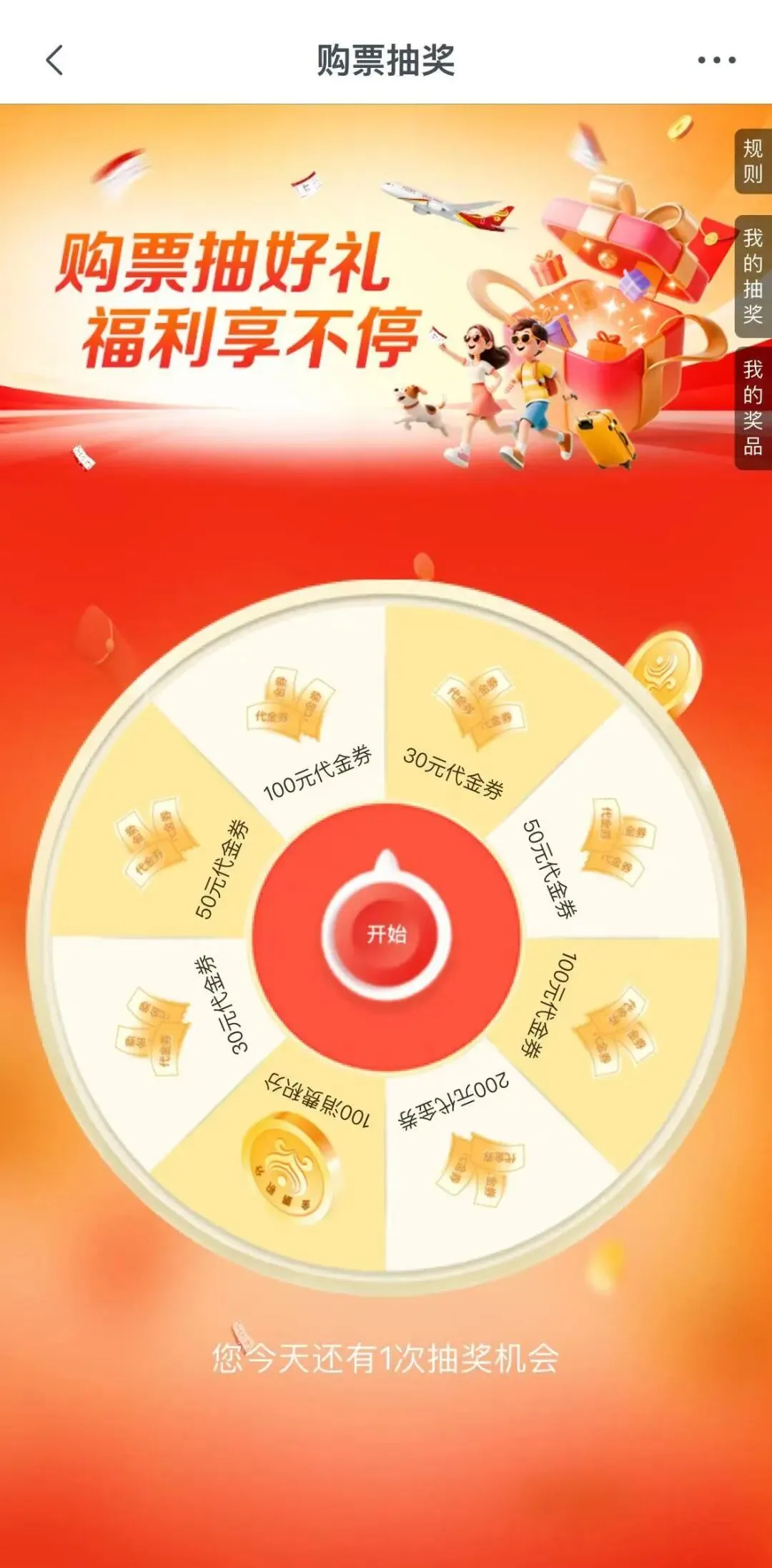 最高可赢取200元机票代金券!