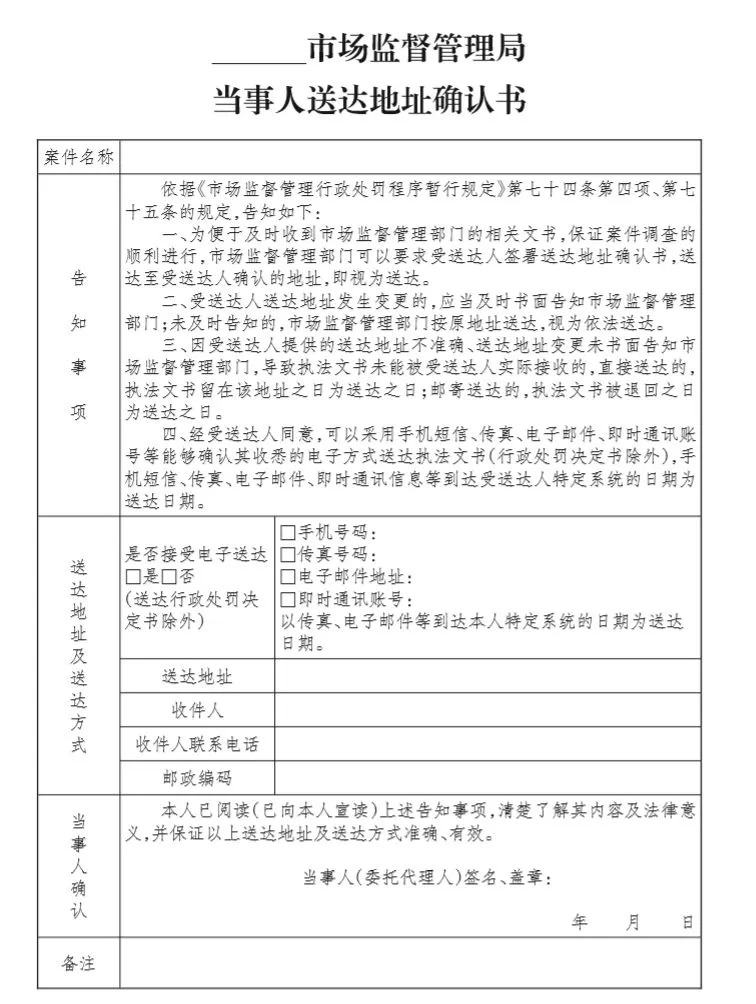 当事人送达地址确认书也有啦