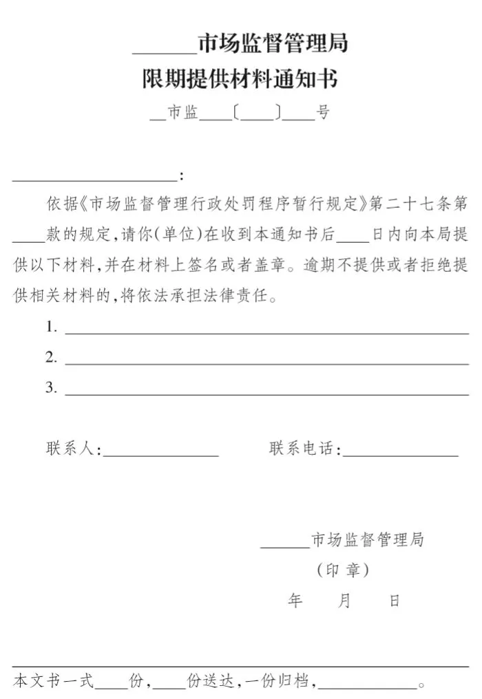 限期提供材料通知书,很实用!