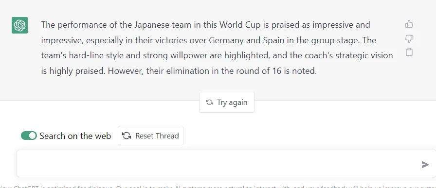 3. 可以紧跟实时热点进行锐评,比如让其评价这届世界杯日本队的表现: