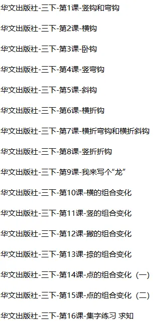 【电子版】2026华文版小学三年级书法指导下册 (教案+课件)全套下载 可打印 下载原文请拉到文末 下载原文请拉到文末 01 资料目录 下拉到文章底部有二维码的地方下载 02 部分课件展示 版面有限 仅展示部分内容 03 部分教案展示 版面有限 仅展示部分内容 下载方法 长按二维轻松下载 电脑下载,方便保存 复制网址去电脑打开: https://jazpan.com/view/2440767 更多资源,关注以下公众号 教师·学生 图文来自网络,版权归原作者,如有不妥,告知即删 点击阅读原文下载1-12年级全部资料