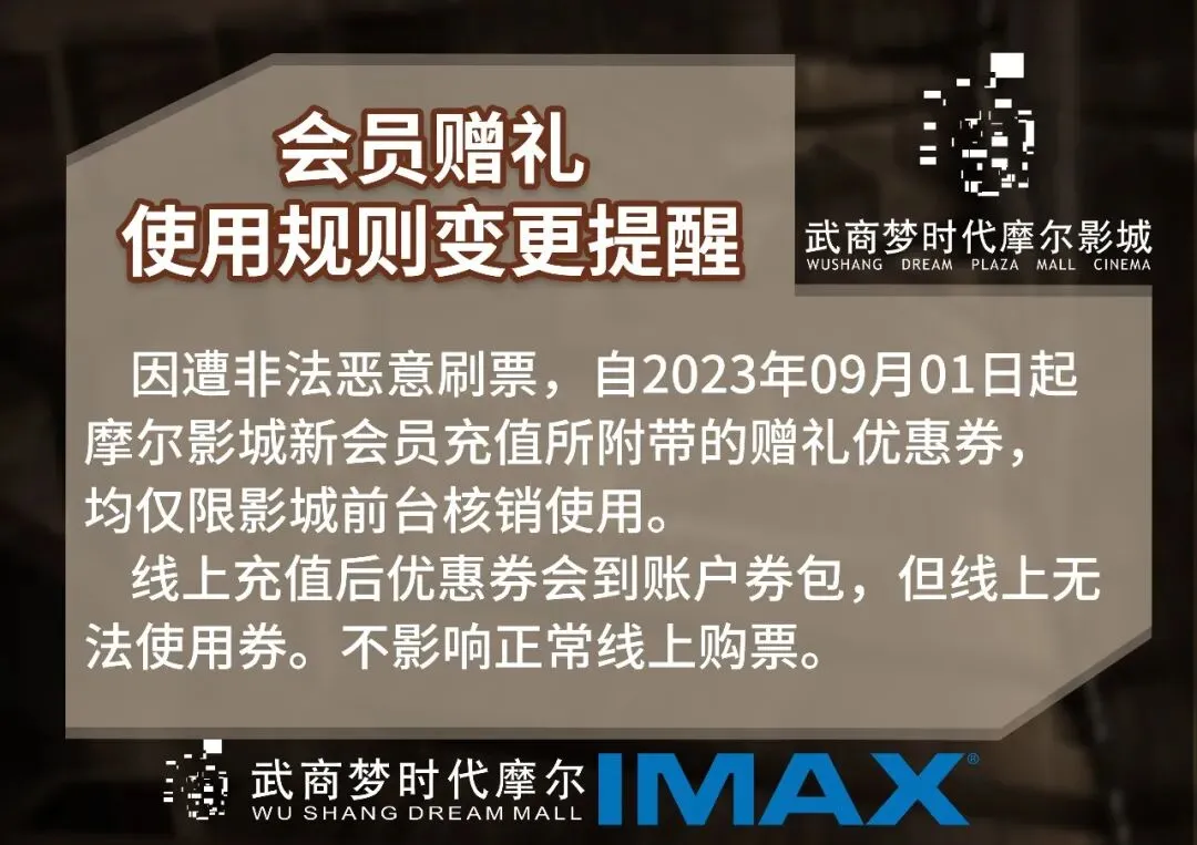 丨公告丨摩尔影城小程序变更说明;退票手续费说明;会员充值活动及细则变更!免责声明!
