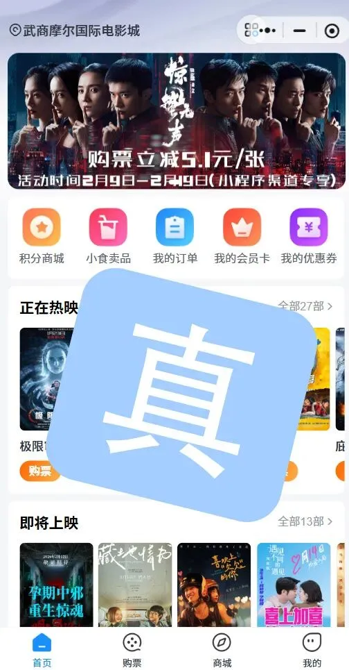 故请摩尔影城的会员和影迷认准摩尔影城唯一购票渠道,谨防假冒小程序。
