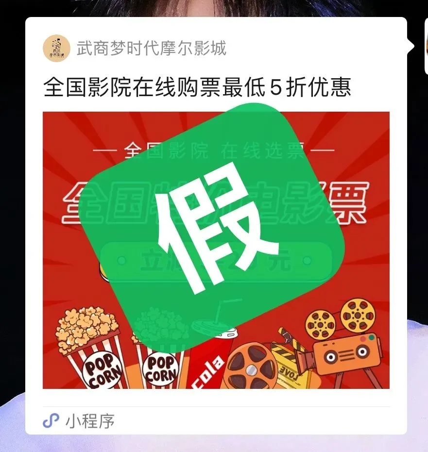 由于近期有影迷在伪冒的“摩尔影城”购票小程序购票,而后发现并非官方渠道,退票后假冒小程序的工作人员并未退还影迷实付款项。给影迷的财产、影城的声誉等造成严重影响。