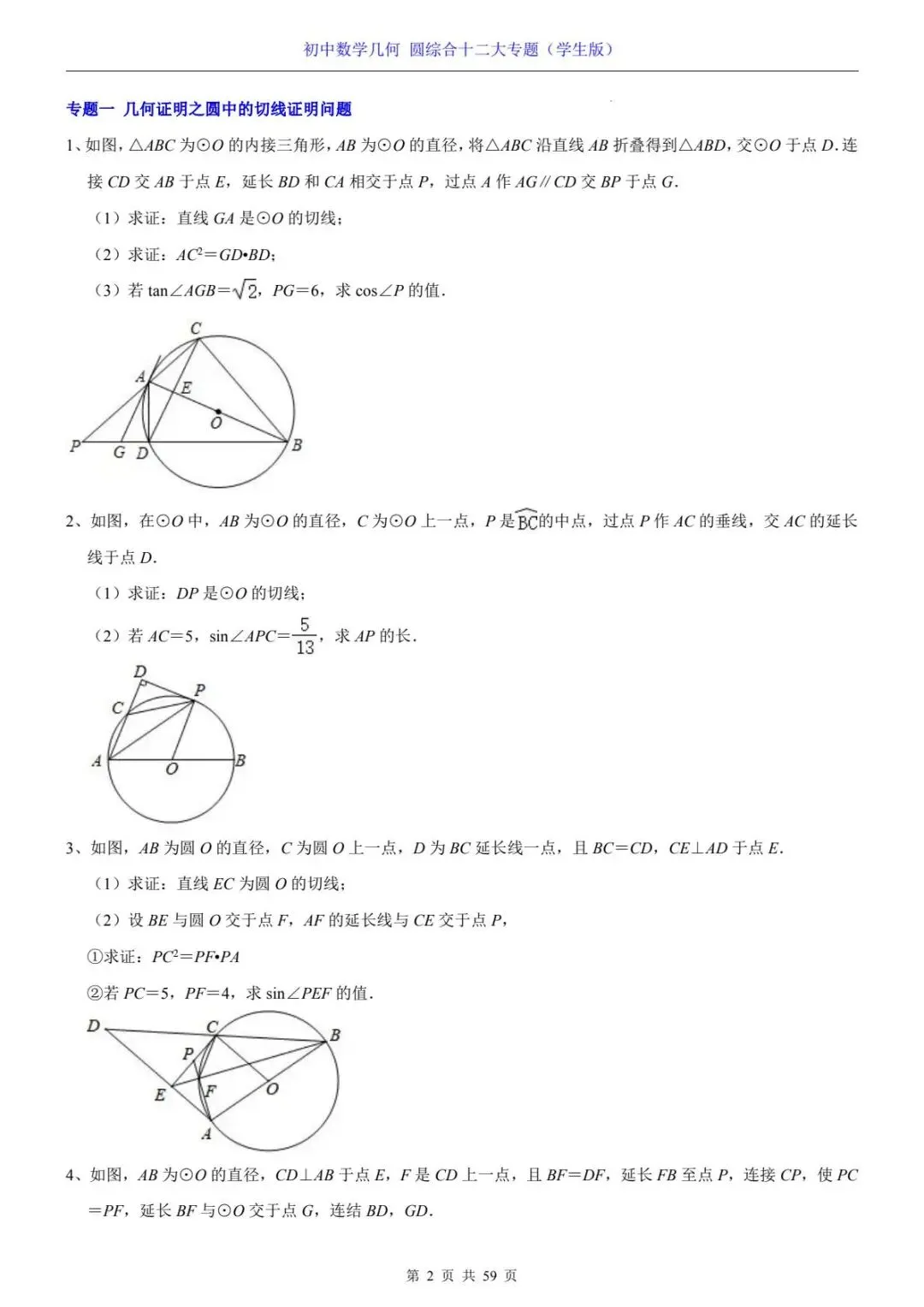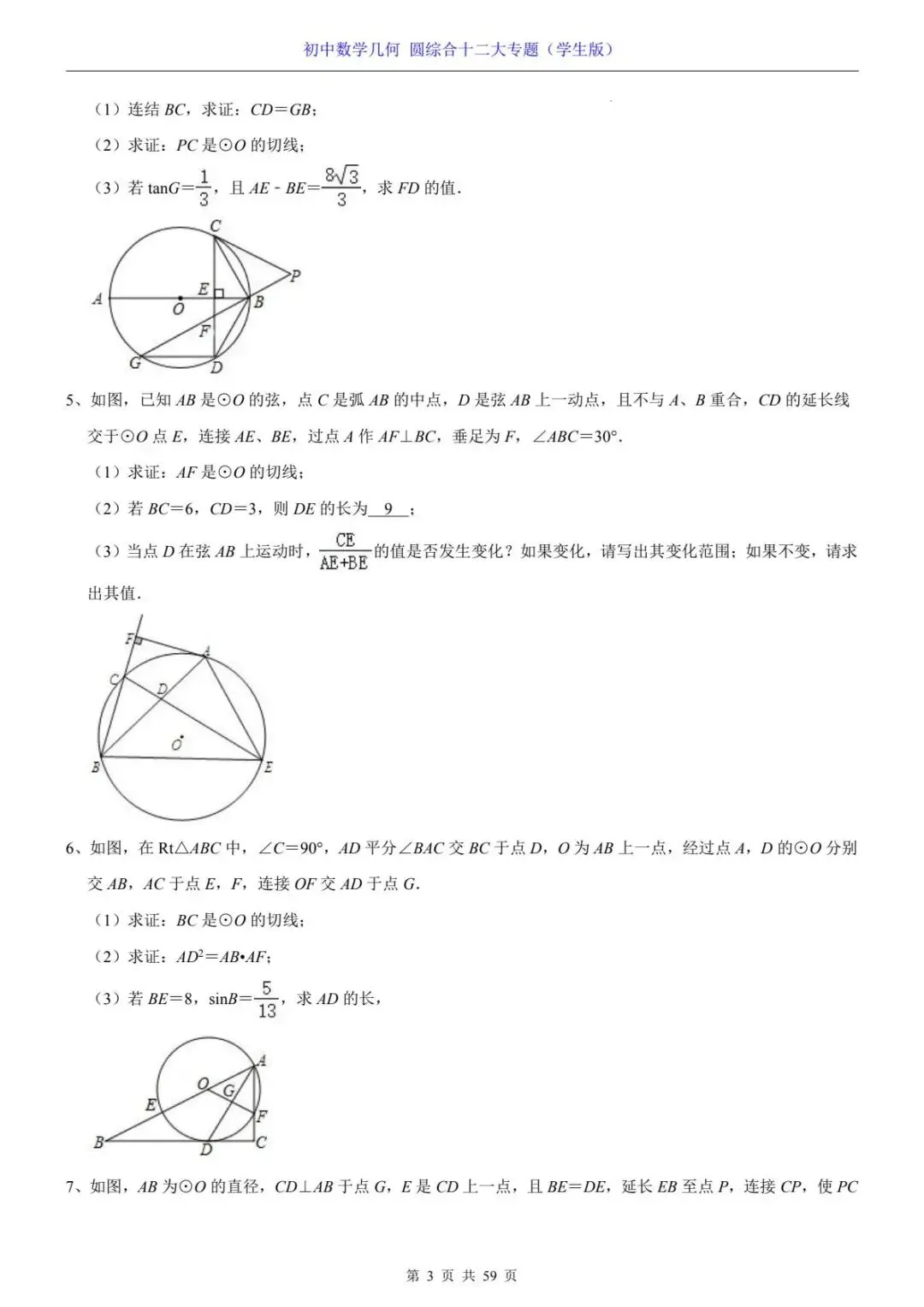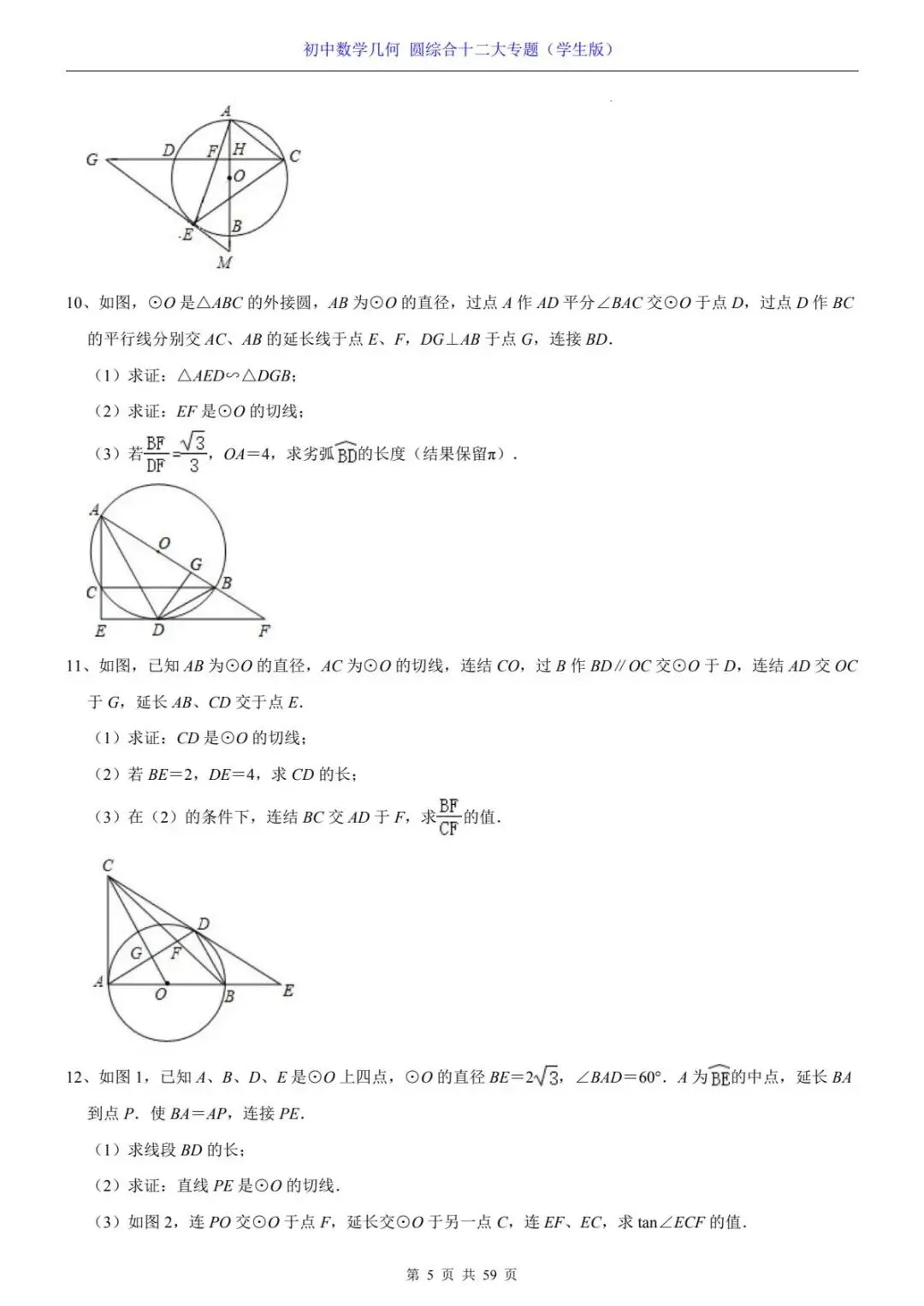 初中数学几何圆综合十二大专题电子版可打印~