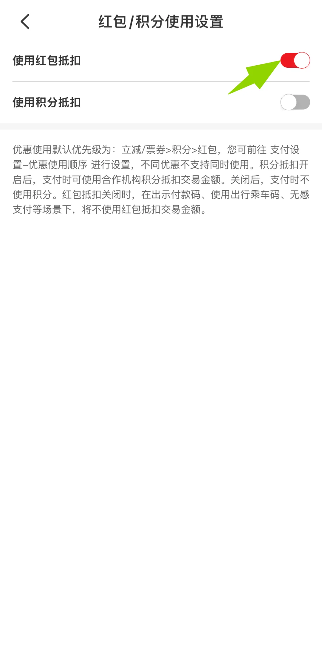 打开【使用红包抵扣】按钮
