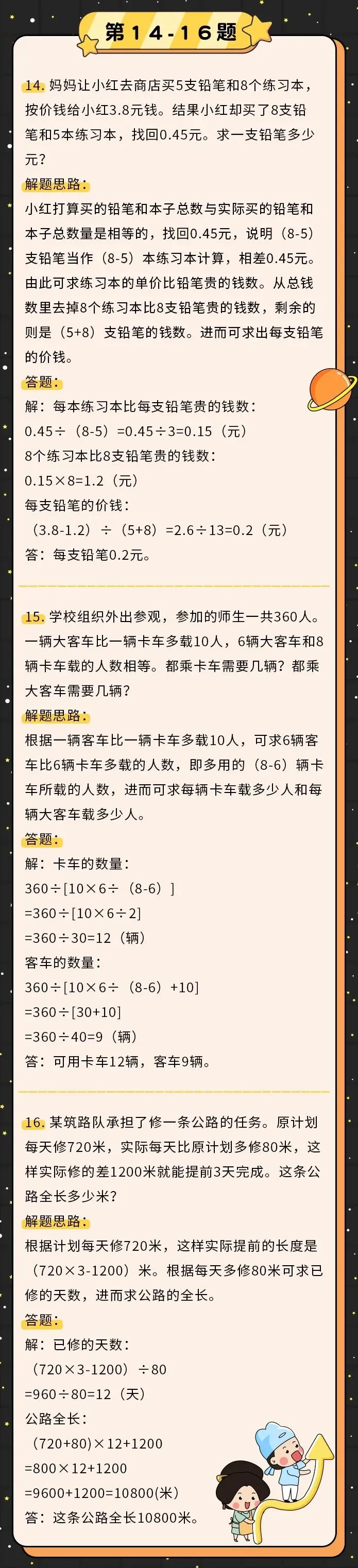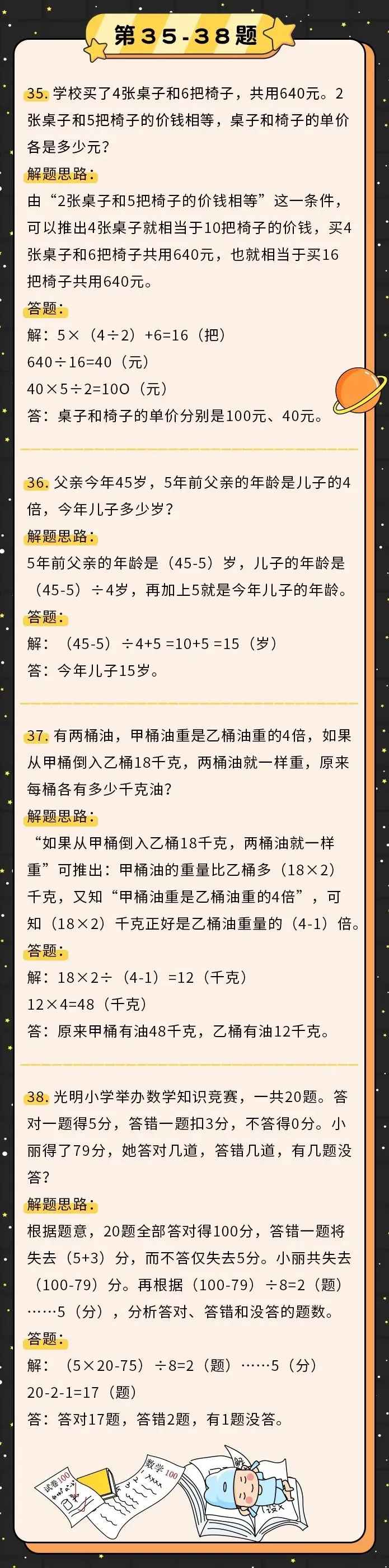 可打印丨小学数学50道经典应用题解题思路+模板,下次考试之前再看一遍!