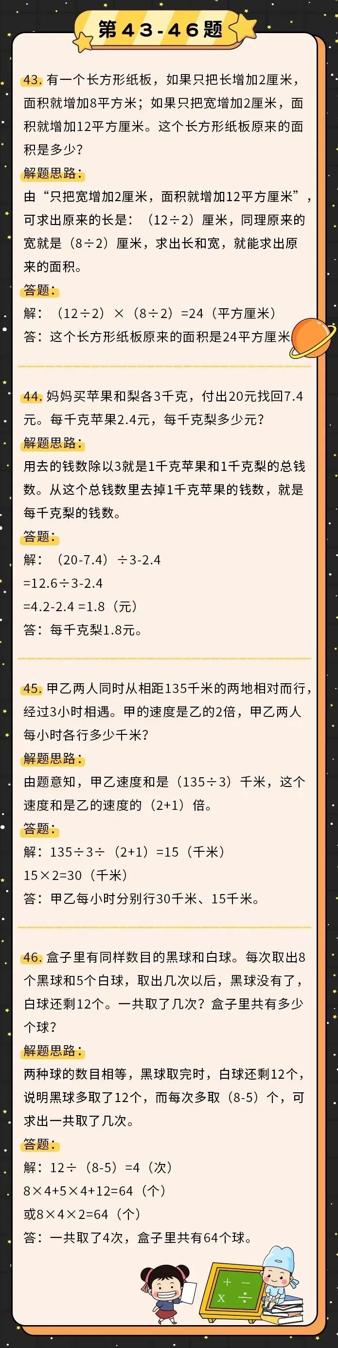 本站文章均为手工撰写未经允许谢绝转载:夜雨聆风 » 可打印丨小学数学50道经典应用题解题思路+模板,下次考试之前再看一遍!