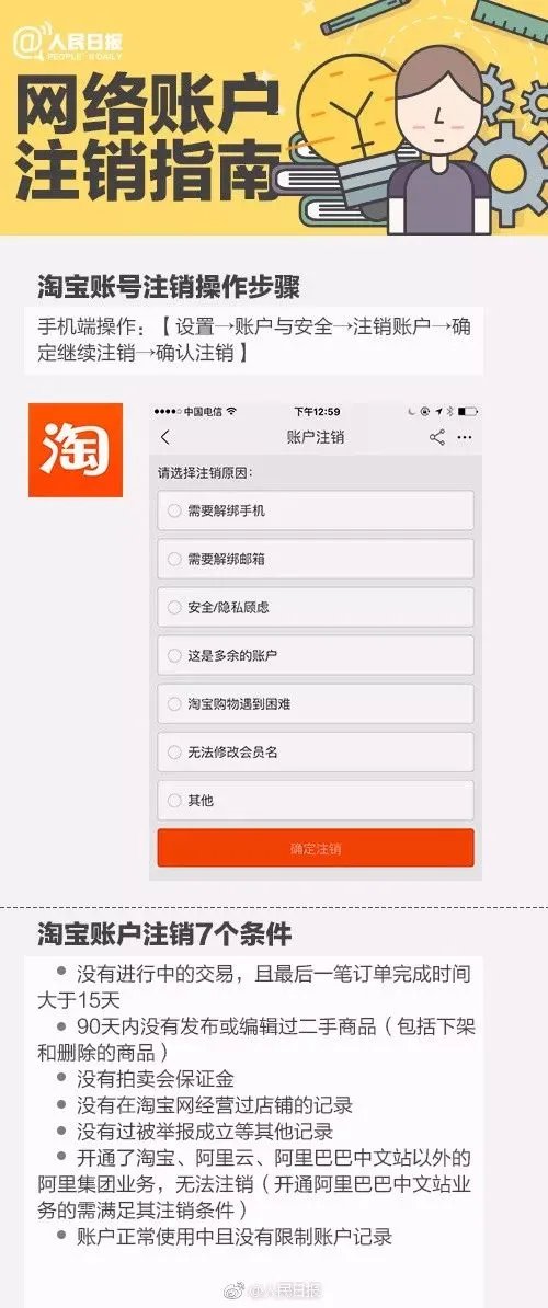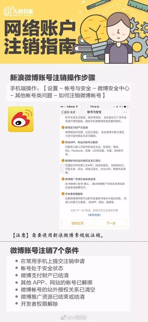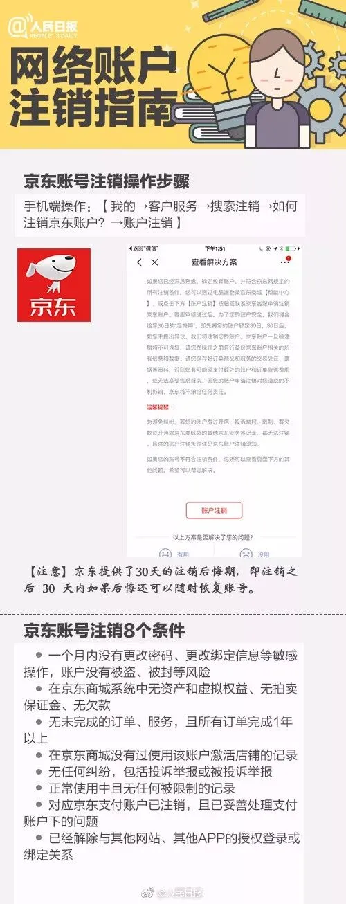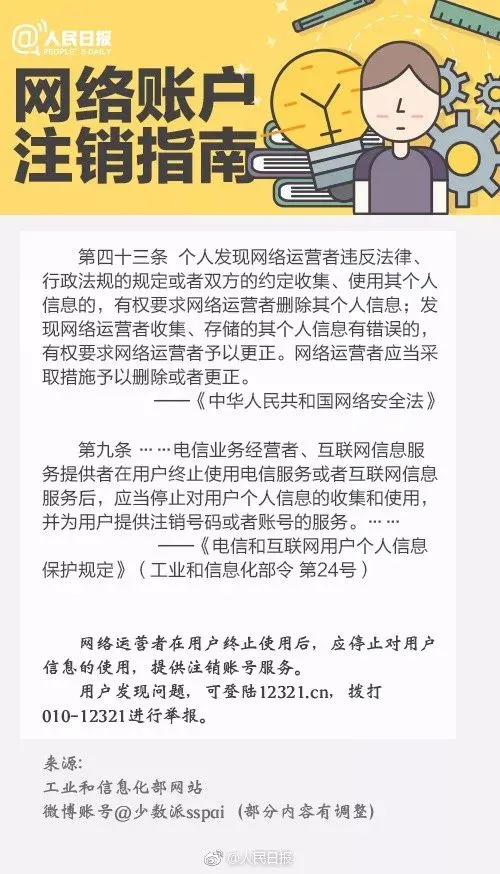 注册了多余账号很久不用,担心信息泄露?下载了手机APP不想用了,发现注销不了?据工信部,个人有权要求删除信息,网络运营者在用户终止使用后,应停止对用户信息的使用,提供注销账号服务!实用网络账户注销指南↓↓有用,转存!
