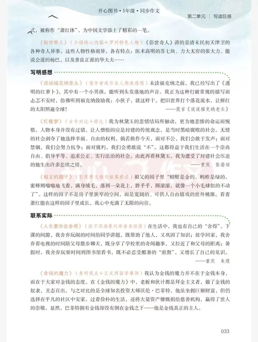 五下第二单元作文:《写读后感》(附可打印范文)