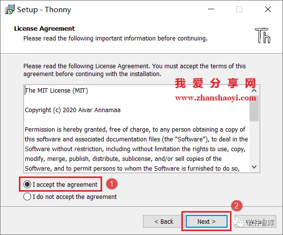3.许可协议,先勾选“I accept…”,然后点击【Next】
