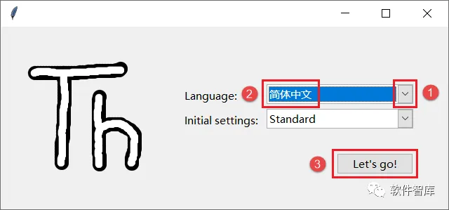 10.首次打开需要选择软件界面语言,这里选择【简体中文】,然后点击【Let’s go!】