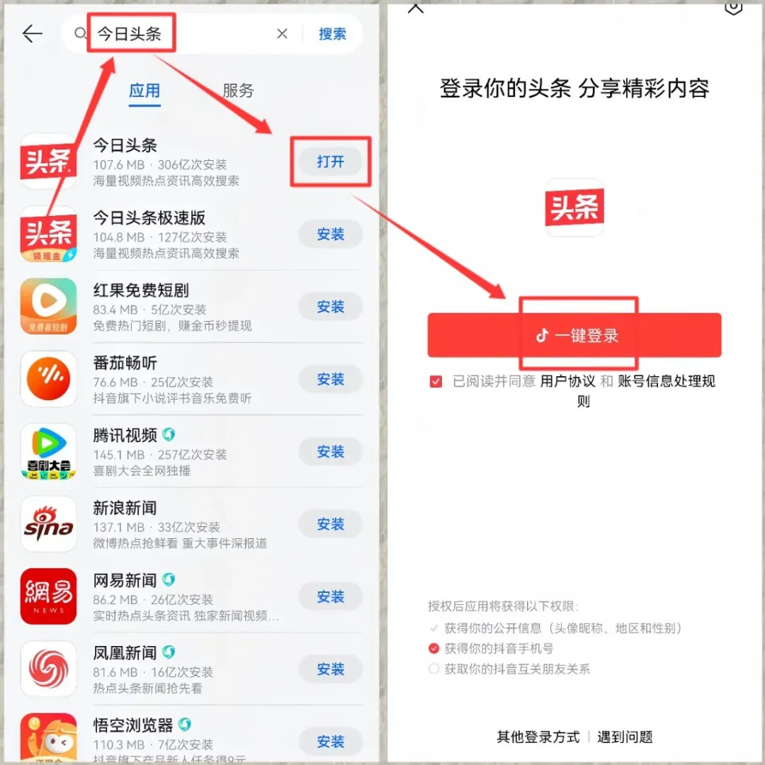 手机应用市场下载今日头条,然后用你的手机号注册即可。