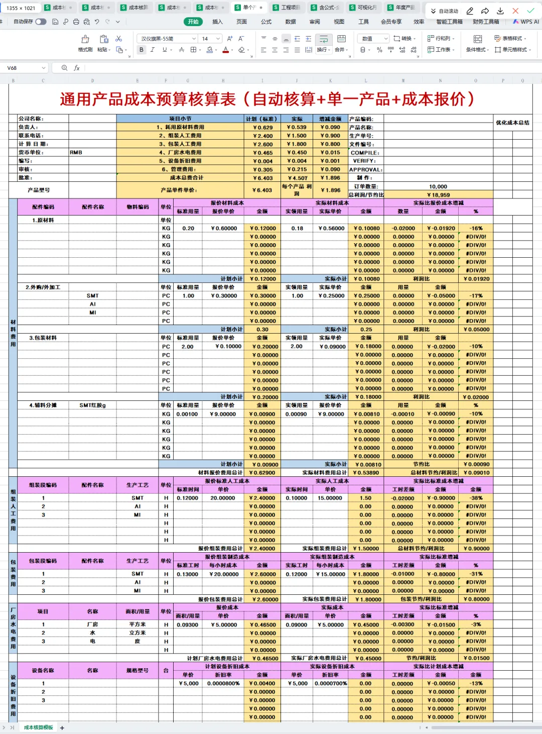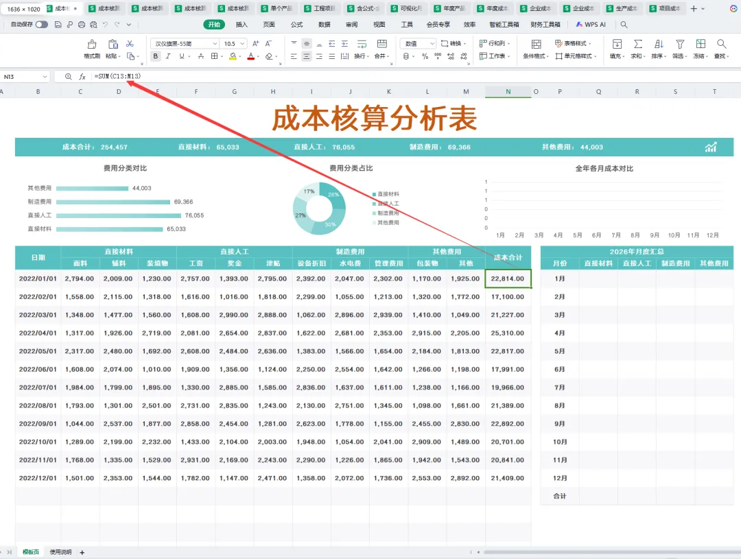 以前做成本核算报表天天加班到头秃,数据对不上,分摊说不合理,还说分析没重点,现在我站起来了!我拥有了成本核算报表,里面有图表展示、各项成本费用、利润率等等,而且里面已经填入公式,可以一键生成成本分析图,现在我不用加班,就能10分钟搞定全厂成本报表!(文末有领取资料的方式)