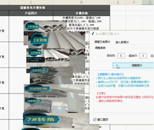 对于已经插入的图片,工具还能一键调整位置和大小,使表格更加工整