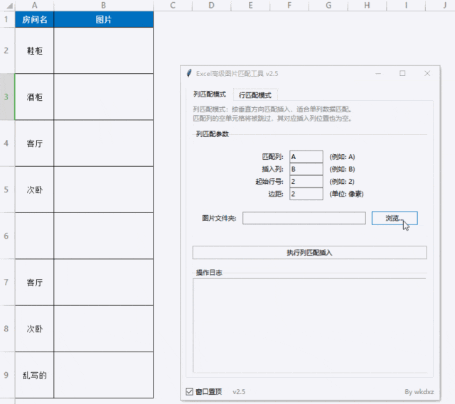 这款工具可以根据行/列的名称来匹配相同名称的图片,从而批量插入指定图片
