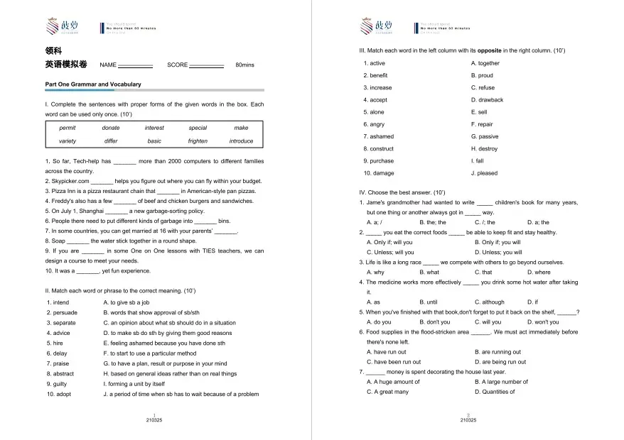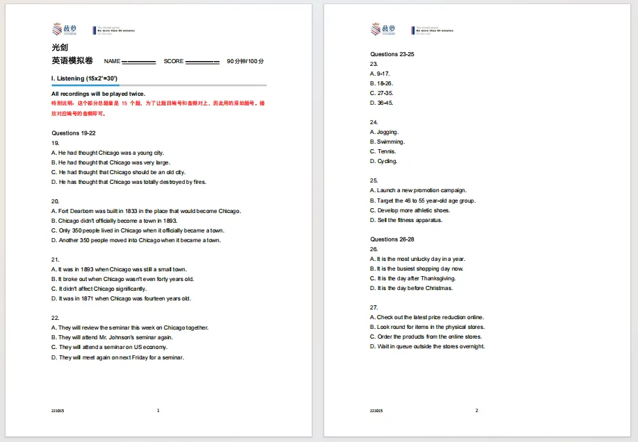 合集!上海热门国际高中入学测试卷PDF下载!领科/光剑/平和/世外/WLSA/星河湾…