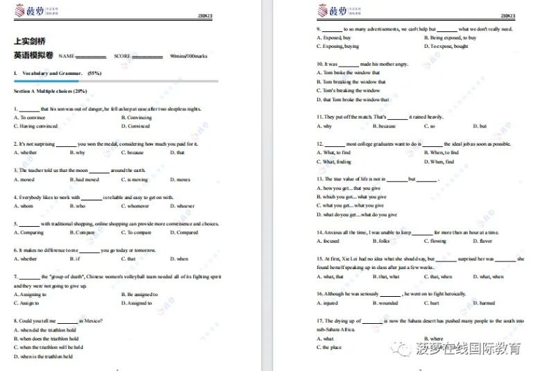 今天统一安排!小编把上海热门国际高中入学真题测试卷全部整理出来了,涵盖领科、光华剑桥、平和、世外、WLSA、星河湾圣华紫竹、光华启迪、上实剑桥等多所头部学校。