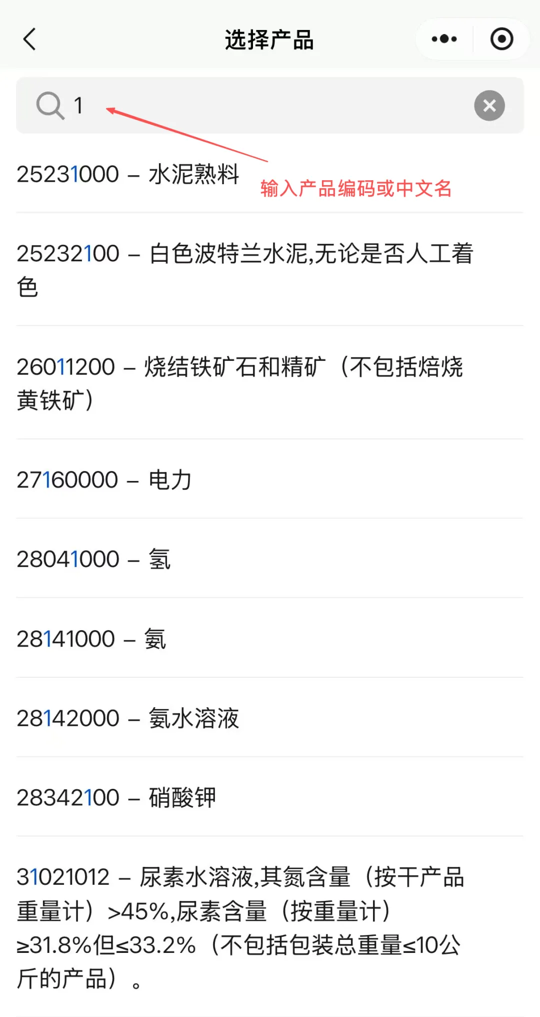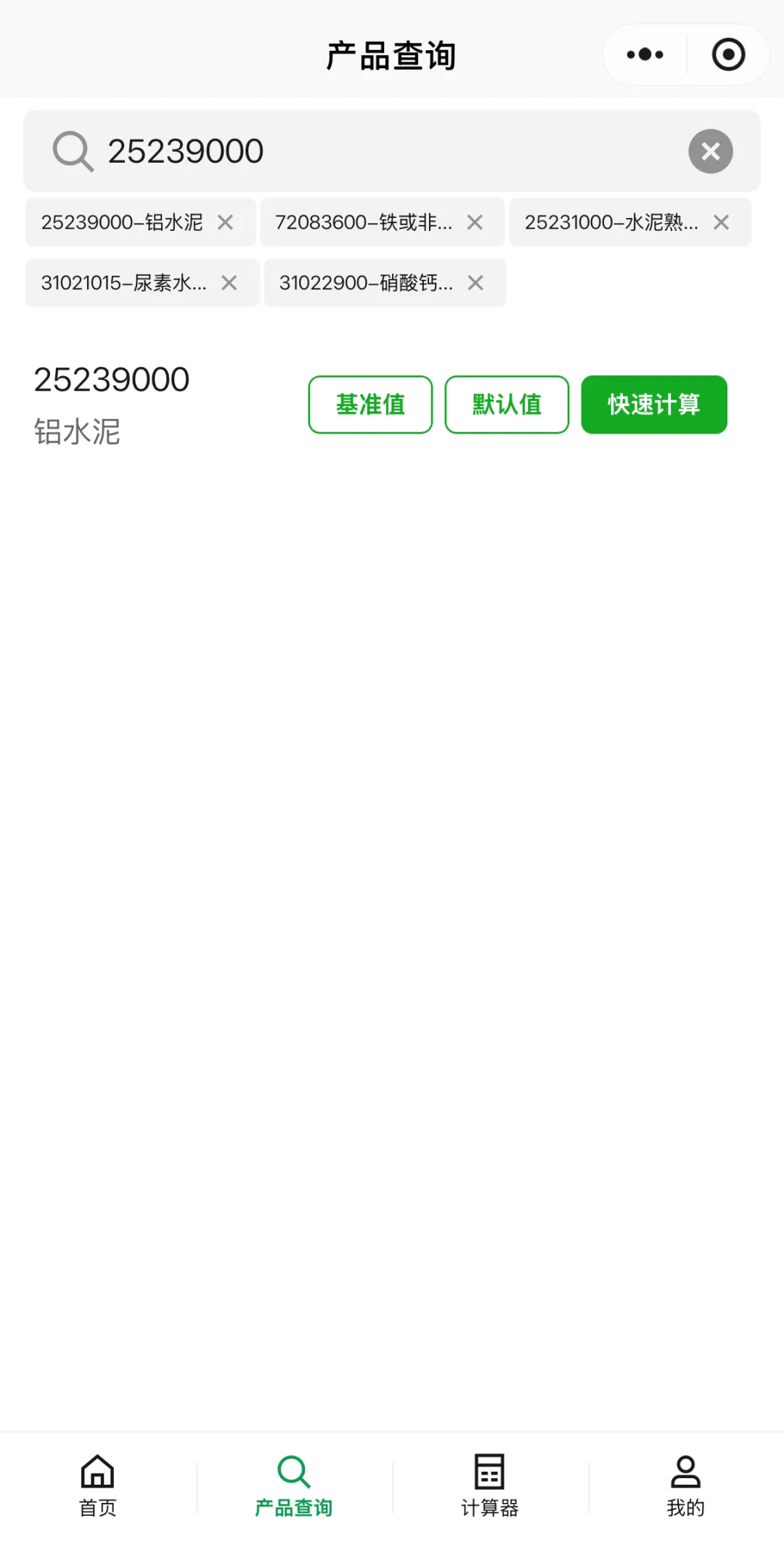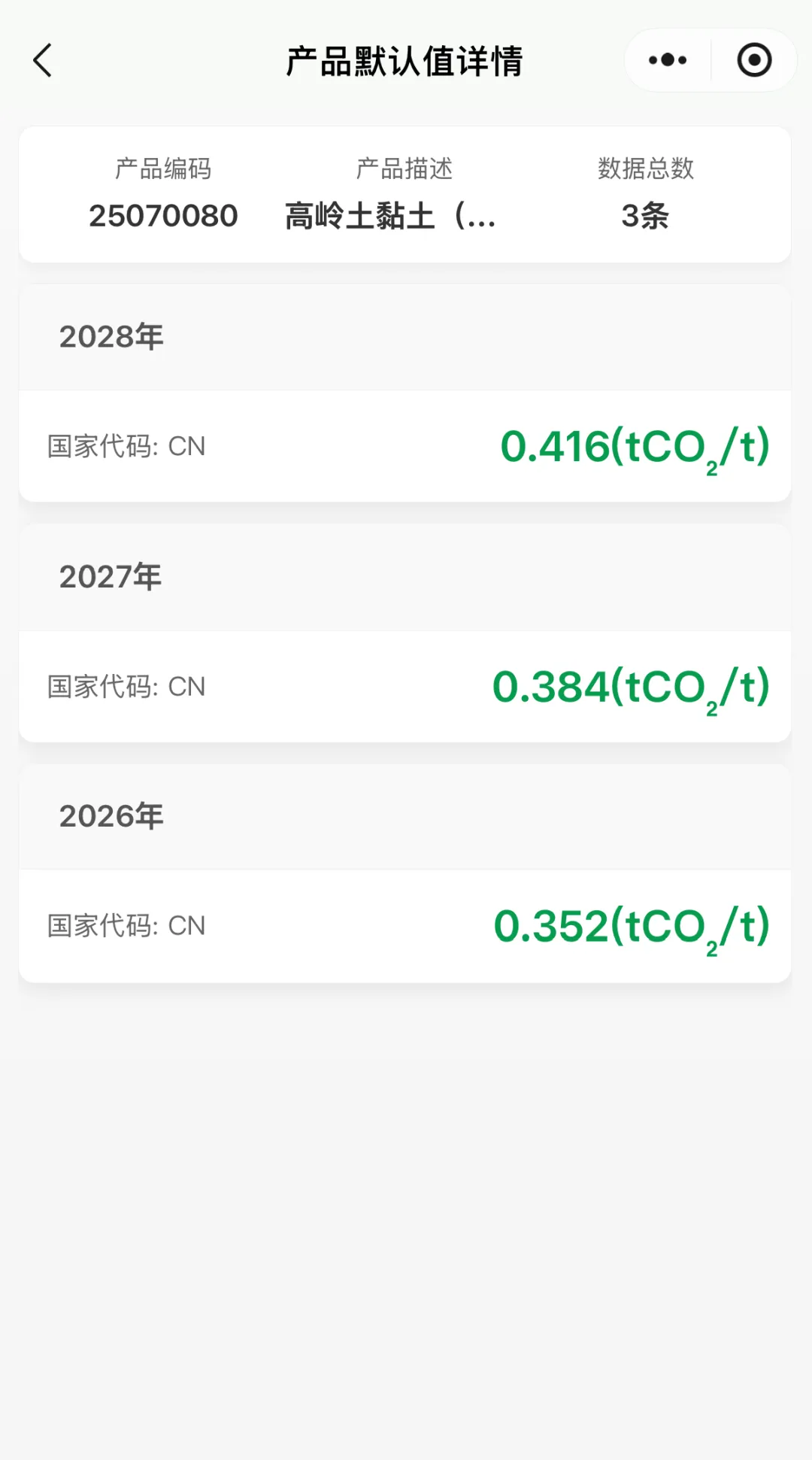 点击【产品查询】页面可查询您的产品是否在CBAM管控范围内及其默认值。