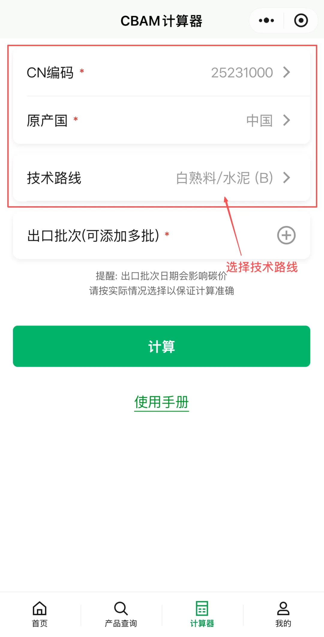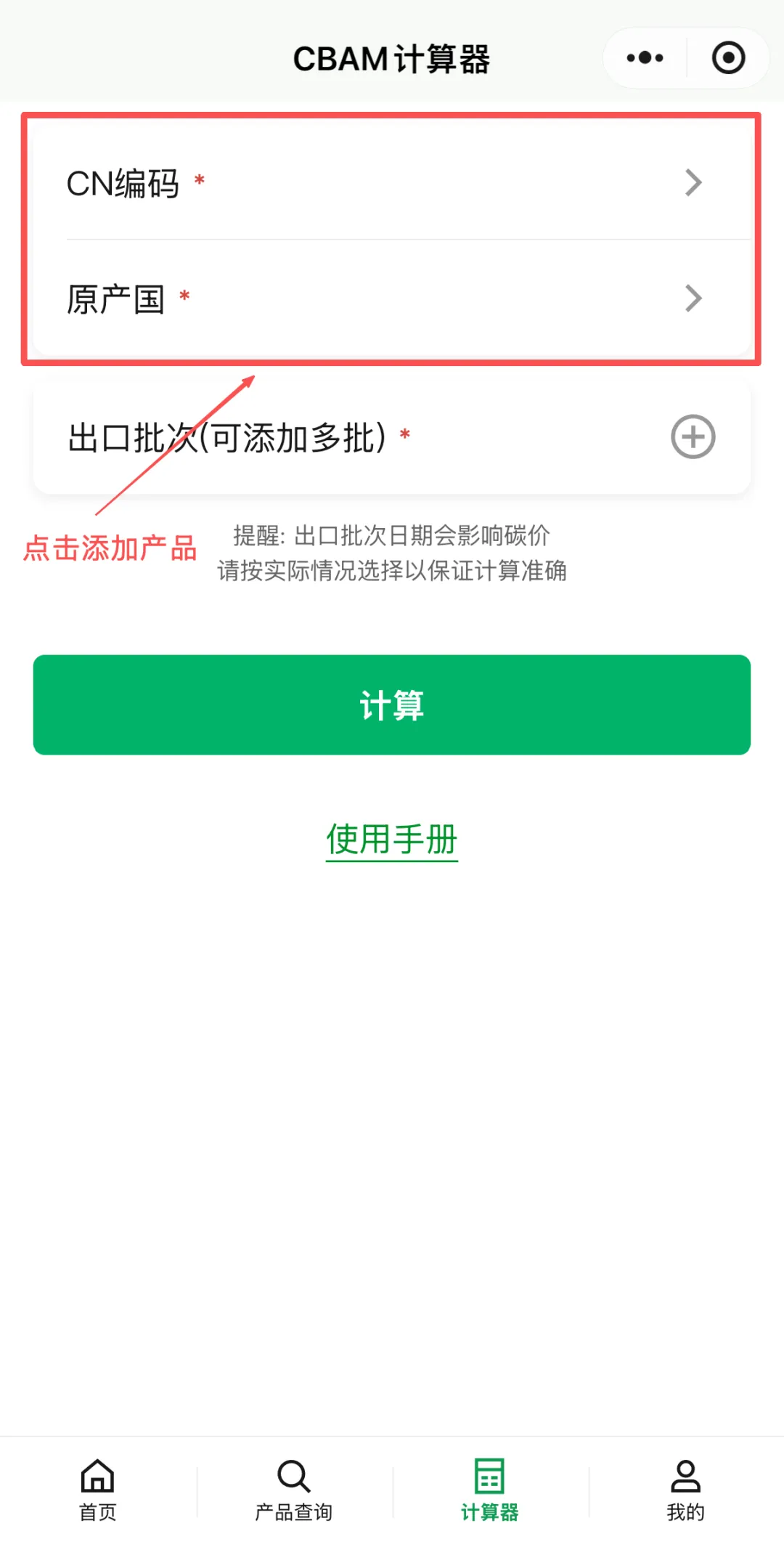 【计算器】用来快速计算产品碳关税。可按默认值或实际值分别计算比较。