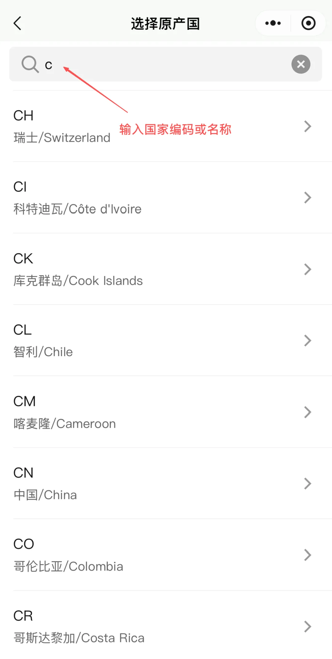 【原产国】:支持编码、中文、英文进行模糊搜索;