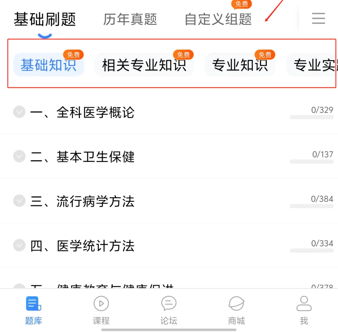 无需多于步骤,打开蓝基因APP【主页题库-右上角添加题库—选择西医—西医中级职称—选择对应科目】即可进入题库,点击即免费,点击即刷题!
