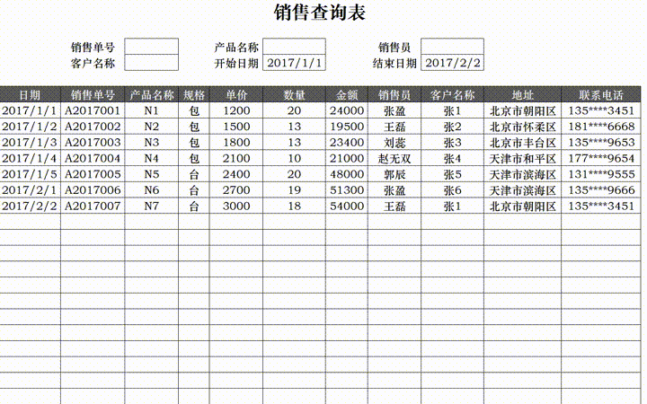 【销售查询表】可以根据实际需求,自由组合多个查询条件进行筛选,未填写条件在查询时将被自动忽略。