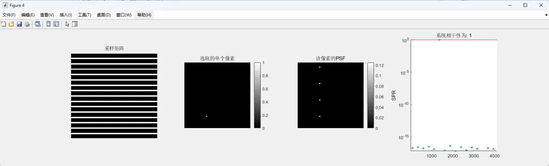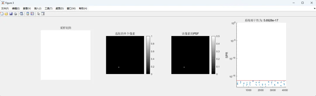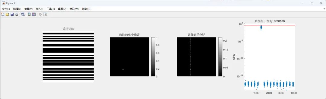 在分析点扩散函数时,还可以进一步计算旁瓣峰值比,这一指标用于衡量伪影强度。旁瓣峰值比反映了点扩散函数中最大旁瓣与主峰之间的比例关系。如果旁瓣峰值较高,说明欠采样带来的伪影较强,系统相干性较高,不利于后续重建。如果旁瓣峰值较低,则说明系统相干性较低,更有利于压缩感知算法恢复真实图像。因此,通过计算旁瓣峰值比,可以定量评估不同采样模式的优劣。通常情况下,随机采样的旁瓣分布更加均匀,其最大旁瓣值也相对较低,因此更符合压缩感知成像的要求。