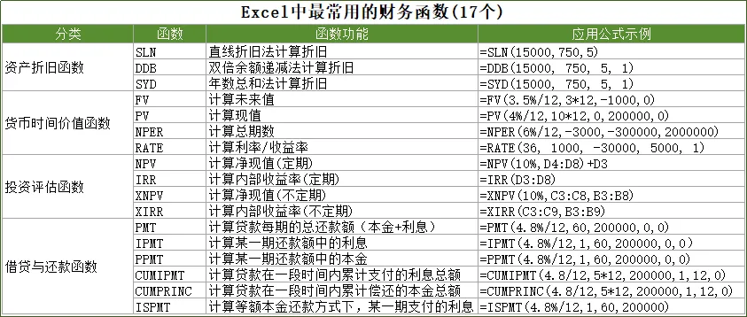 Excel常用财务函数汇总表,17个Excel函数全解析