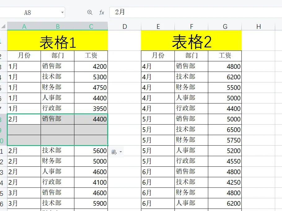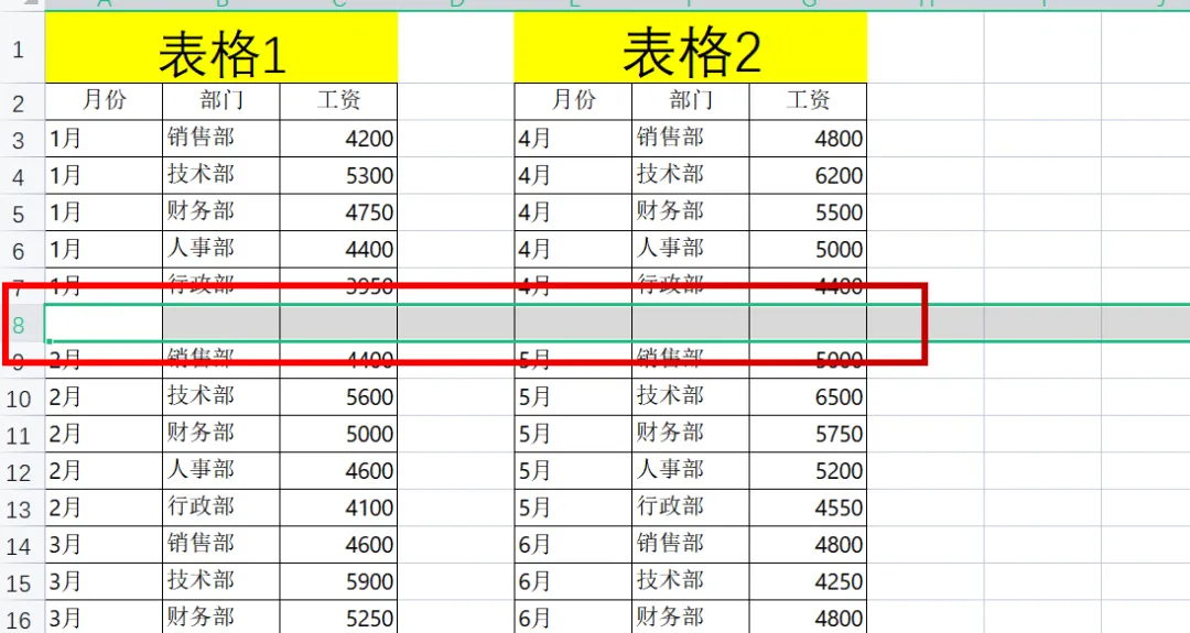 这样只对表格1加入行,右侧表格2不变。你学会了吗?