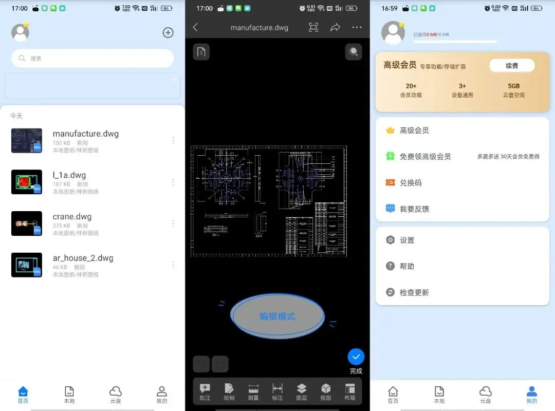 **简介:** CAD看图大师是中望软件官方出品的CAD看图与编辑工具。它支持dwg、dwf、dxf、pdf等多种格式图纸的快速查看,提供精准的测量标注(长度、角度、面积等)、基础编辑绘图功能以及图层管理。适用于建筑、机械、电气等行业人员在移动端处理图纸。