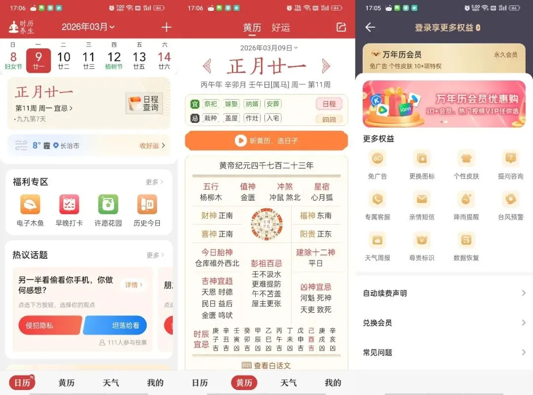 10. **中华万年历(黄历,吉日等,可选手机号登录)9.7.9**