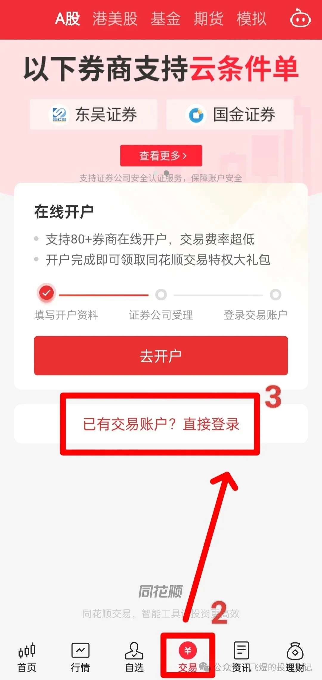 温馨提示:如果您从来没有使用过同花顺App,那您就按部就班从下面第1步开始看,如果您已经在使用同花顺App,那就直接跳转到第6步再开始看。注:请读者以上图下文的顺序阅读)